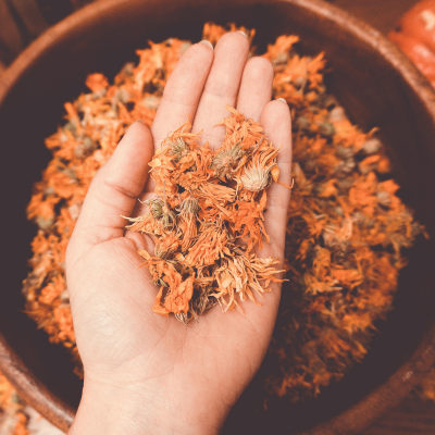 Diese Inhaltsstoffe wirken vor allem auf die Haut, das Gewebe und die Schleimhäute – und machen die Ringelblume zu einer echten Wundheilerin.